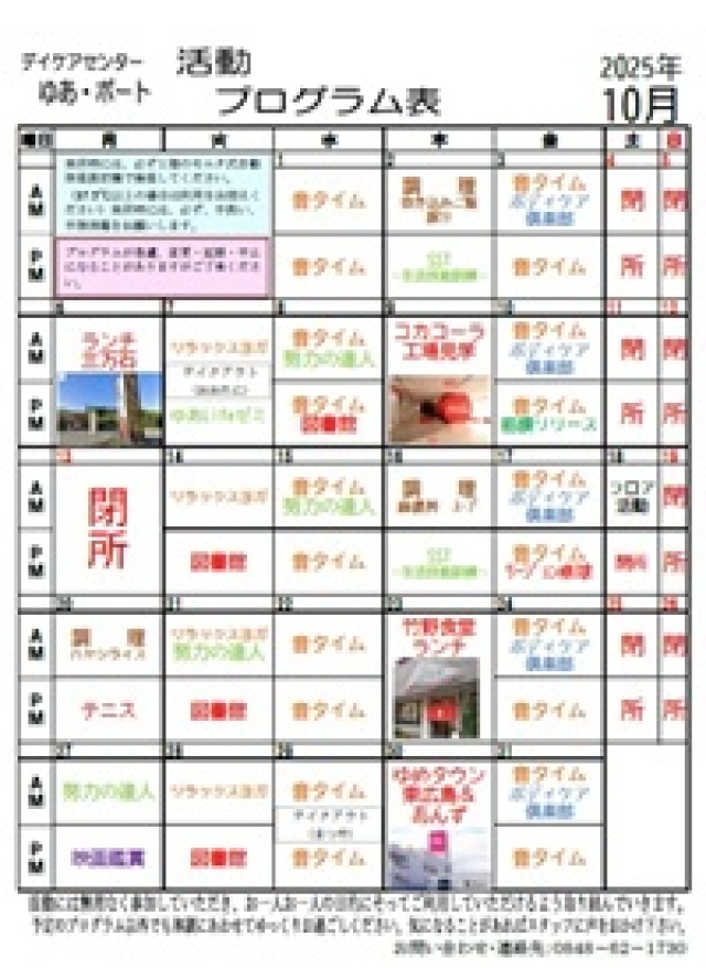 令和7年10月の行事予定です -