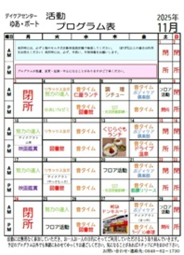 2025.10.19 NEW 2025年11月 ゆあ・ポート予定表ができました。 ご覧ください。