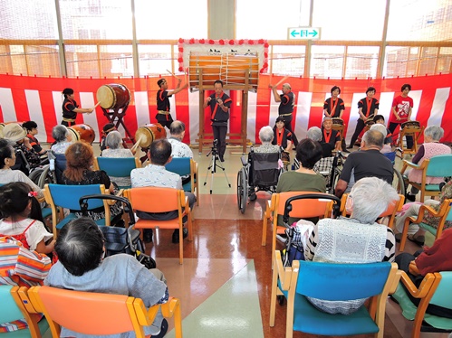 途中では利用者様へ太鼓叩きの体験をさせてもらいました。